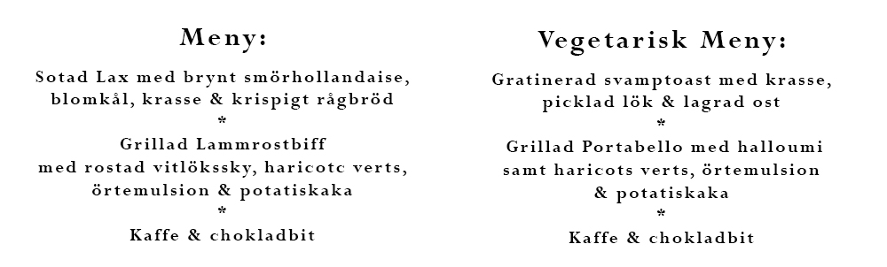 18:00 Servering 2 rätter inkl. kaffe
